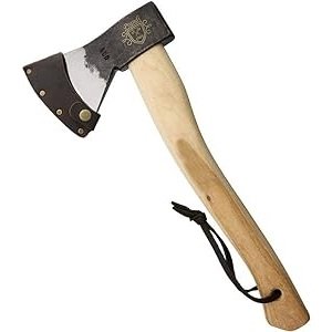 Don’t underestimate this little axe. The Hudson Bay’s slim profile and 21-inch handle keep the overall weight down. But don’t let its size fool you – the forged 1080 carbon steel head packs a serious punch. It can handle everything from chopping kindling to taking down small trees with surprising ease.